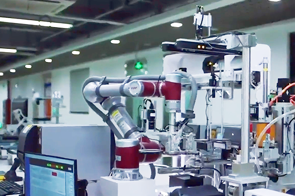 在迈瑞生产基地的AED自动化产线上,节卡机器人承担着贴标和上下料等核心工序。面对贴标环节的曲面难题,机器人充分发挥±0.02mm重复定位精度,集成曲面设计取料治具,配合视觉二次精准定位,实现在曲面上精准贴标。同时,机器人配合AGV和辊筒线,构建起高度柔性的自动化物流系统,将物料精准配送至线边。由此,产线生产自动化率从30%提升至80%,产能提升一倍,平均90秒产出一台AED,月产能达到2万台,为“救命神器”的稳定供应提供了保障。