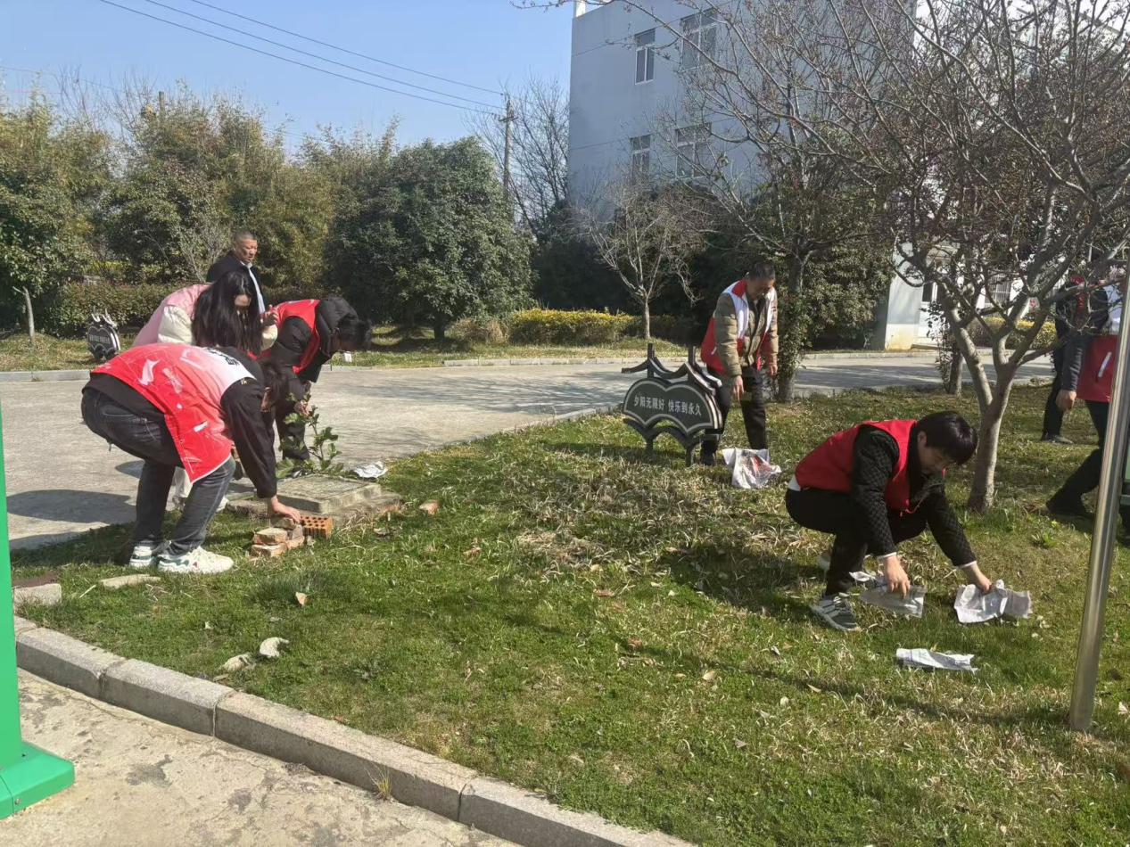 活动中,志愿者们身着志愿服装,手持夹子、扫帚、垃圾袋等工具,分工协作、默契配合。大家沿着村内道路、绿化带、卫生死角仔细清理,认真捡拾塑料袋、烟头、纸屑等生活垃圾,耐心拔除路边杂草、清理枯枝杂物。尽管劳动琐碎辛苦,但志愿者们热情高涨、干劲十足,以实际行动践行“奉献、友爱、互助、进步”的志愿精神。