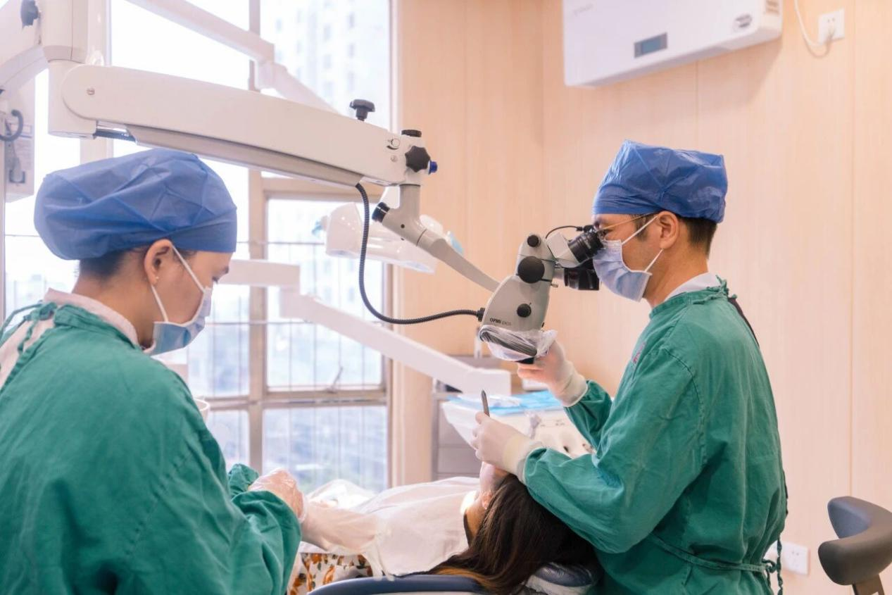 “比如头发丝般纤细的断针滞留在牙根深部,如何小心取出且不伤及邻近鼻窦,考验医生的手力、眼力。”王吓勇解释道,显微镜犹如为医生装上“洞察毫厘的慧眼”,可将根管在视野下放大20-30倍,配合强光照明、超声系统及显微根管器械,主刀医生能清晰辨认牙齿内部细微结构、看清盲区,从而减少手术误差。