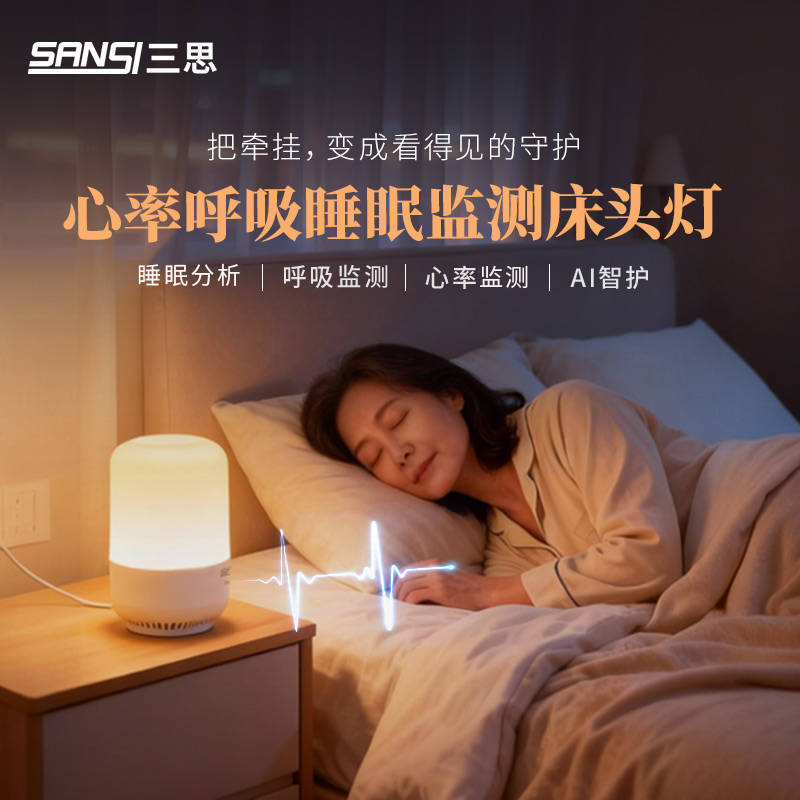 对于追求睡眠舒适度与安全性的中老年群体,传统穿戴式设备往往带来束缚感与心理负担。三思床头灯采用非接触式毫米波雷达传感器,以“零束缚、零操作、零负担”的方式,默默守护长辈的夜间安睡。设备可持续监测心率、呼吸频率,并能智能识别整夜呼吸暂停等异常事件。