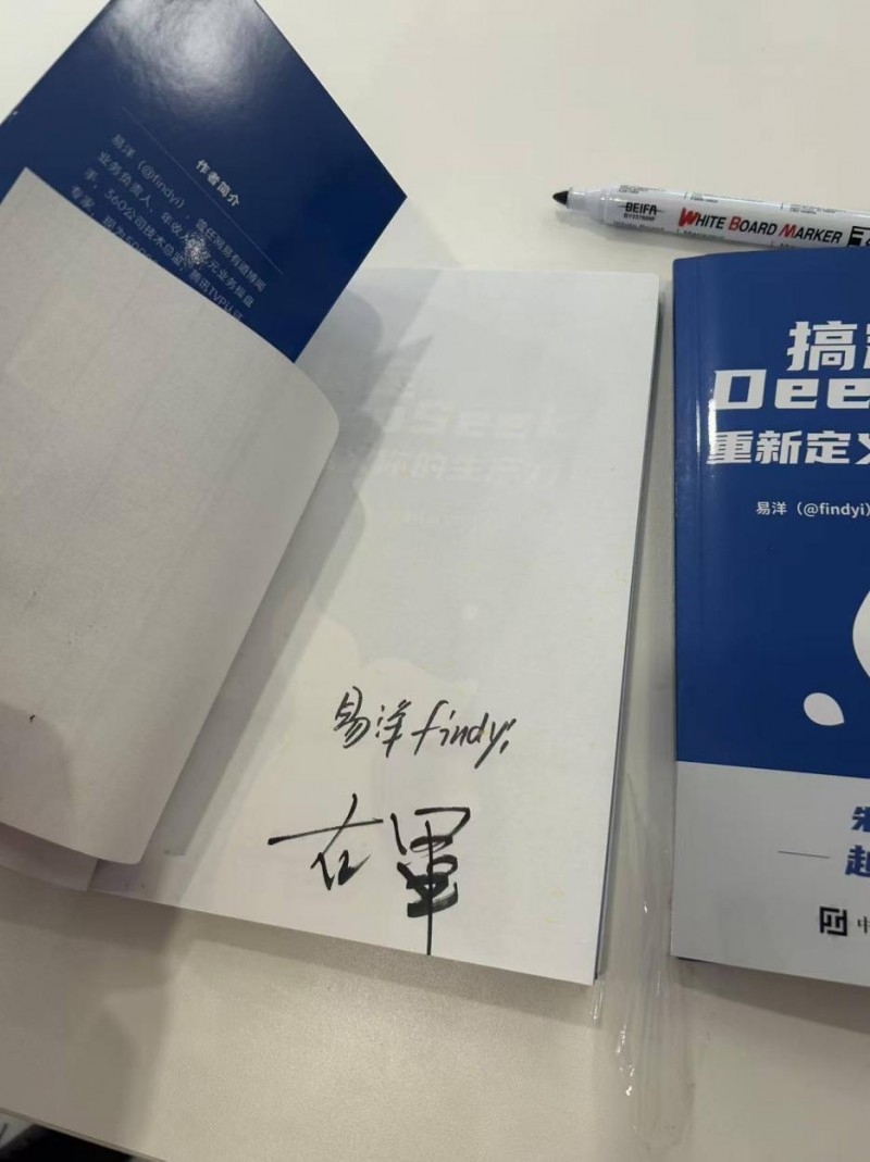 AI破局俱乐部创始人易洋和AI破局企培中心创始人右军老师联合签名的DeepSeek书籍