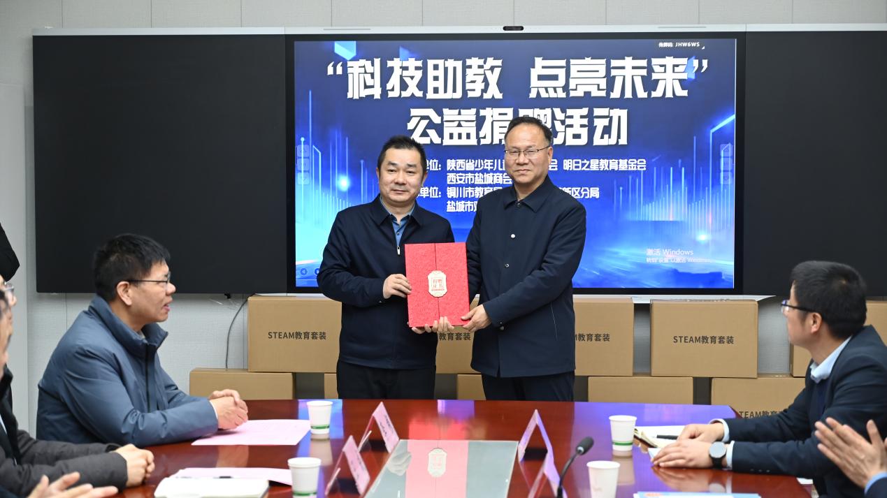“捐赠从来不止是物质层面的援助,更是梦想的播种、未来的投资。期盼这批科教资源能够化作火种,点亮孩子们心底的好奇与憧憬,助力他们在阳光下向阳而生、茁壮成长。”陕西省少年儿童文化研究会会长卞正华表示,作为扎根异乡的家乡力量,未来将持续深化与盐铜两地的协作联动,以实际行动为两地教育事业高质量发展注入更多公益力量。