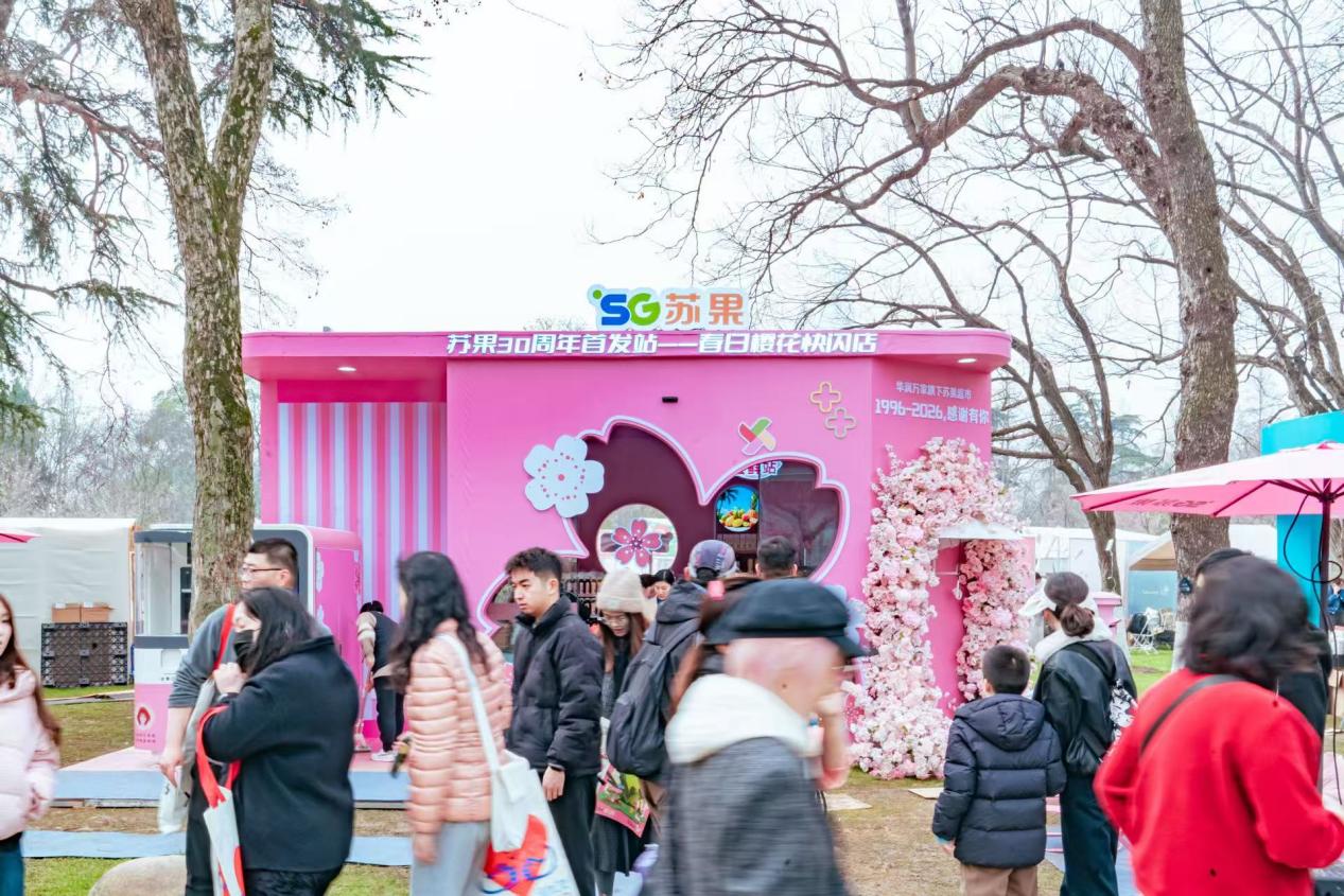 三月的南京,玄武湖樱洲樱花烂漫、春意盎然,成为全城赏樱打卡的热门地标。3月20日,苏果30周年春日焕新快闪店正式开业,作为苏果2026年度品牌焕新战役的首发站,这场以“苏果30周年 樱你而来”为主题的快闪活动,以樱花粉为主色调,沉浸式融入樱洲春日美景,开业现场人气爆棚,游客与市民争相打卡,开启一场春日逛吃新体验。