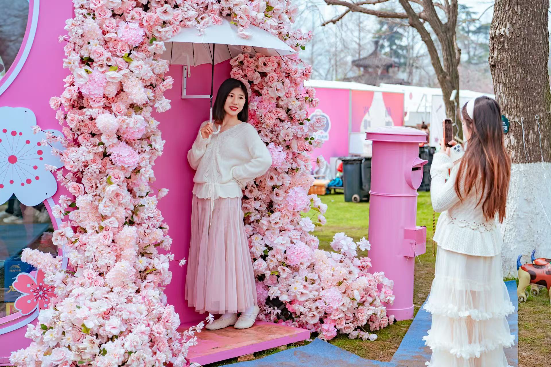 开业当天,玄武湖樱洲的快闪店前人头攒动,不少市民游客刚踏入樱洲,就被这份春日限定的美好吸引,纷纷驻足拍照。带着孩子出游的家庭、相约赏樱的好友、拍照打卡的年轻人,都走进快闪店解锁春日惊喜,店内各个主题场景前都围满了体验的顾客,试吃区更是人气居高不下,欢声笑语不断,成为玄武湖樱洲一道别样的春日风景线。
