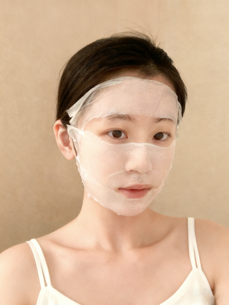 使用棉质轻薄的湿敷棉,沾取足量护肤水,轻轻敷在T区、下巴和脸颊等位置。