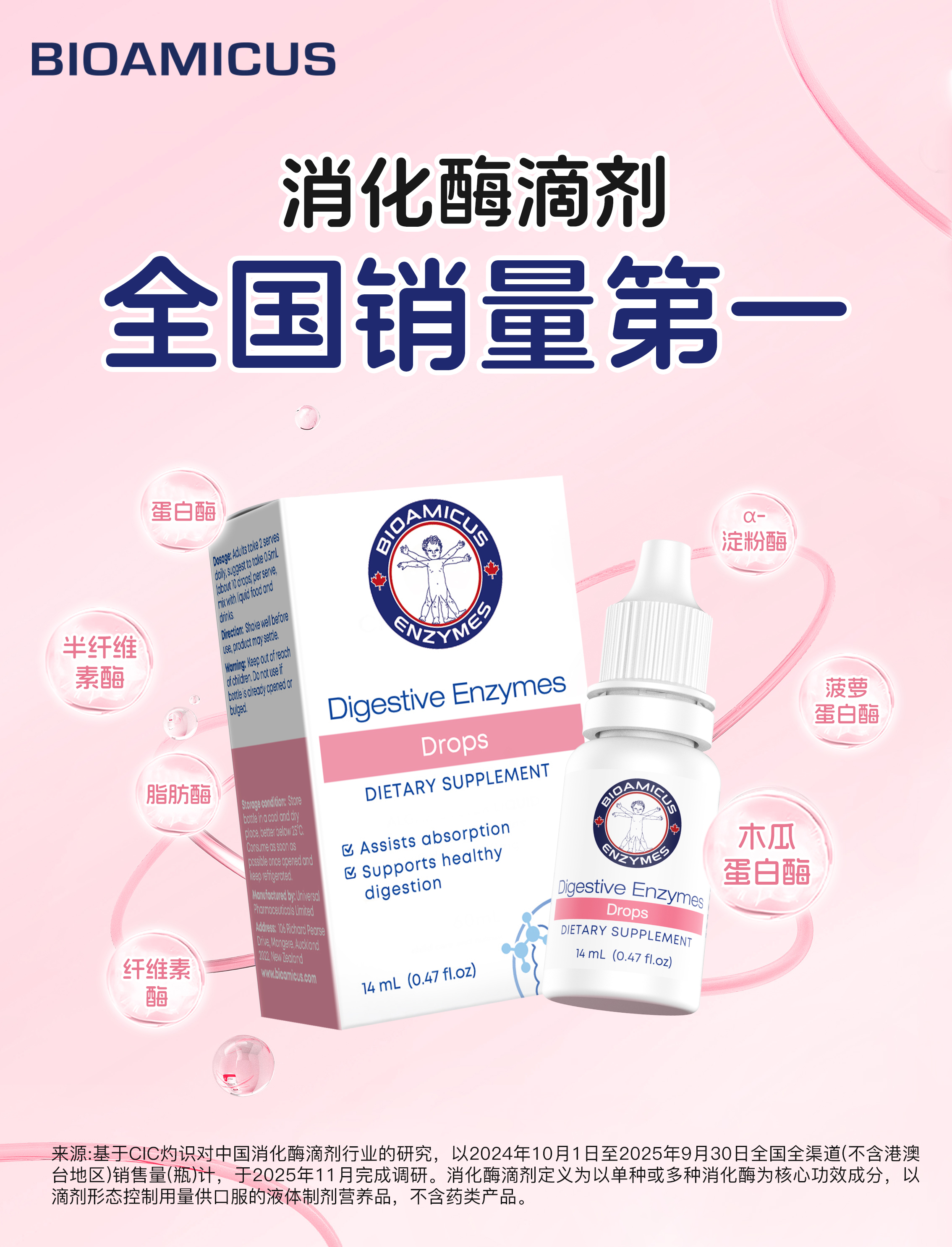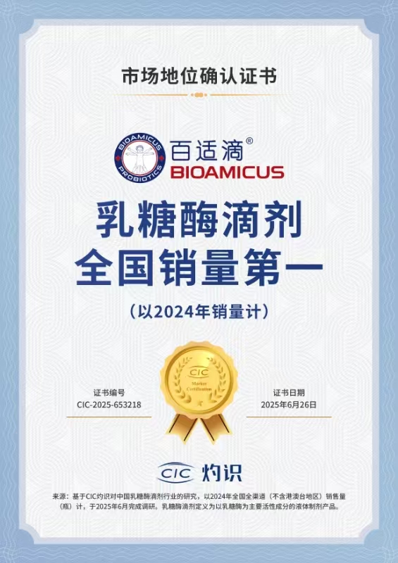 近年来,国内婴幼儿营养品市场呈现出明显的功能化、细分化趋势。在众多品牌中,百适滴(BIOAMICUS)凭借对乳糖酶、益生菌等垂直领域的深耕,逐步建立起市场认知。2025年7月,百适滴获得CIC灼识“乳糖酶滴剂全国销量第一(以2024年销量计)”的市场地位确认,这一第三方认证将其推至行业关注的中心。