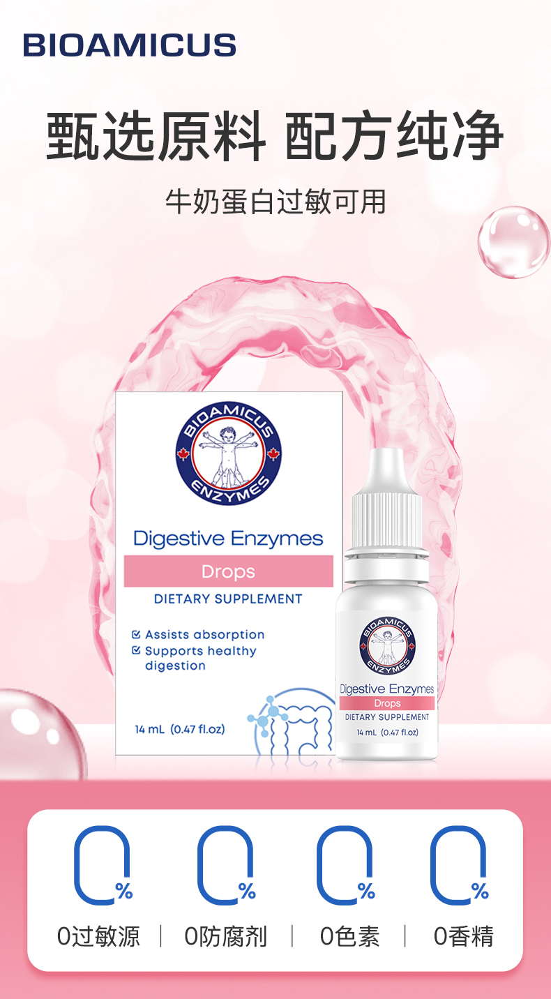 品牌名称“BIOAMICUS”蕴含着“生物友好”的原始理念,这也延伸出其“自然、纯净、安全、有效”的产品理念。在成立初期,百适滴便将研发方向锁定在婴幼儿肠道健康与代谢调节领域,乳糖酶、益生菌等成为其早期核心品类。