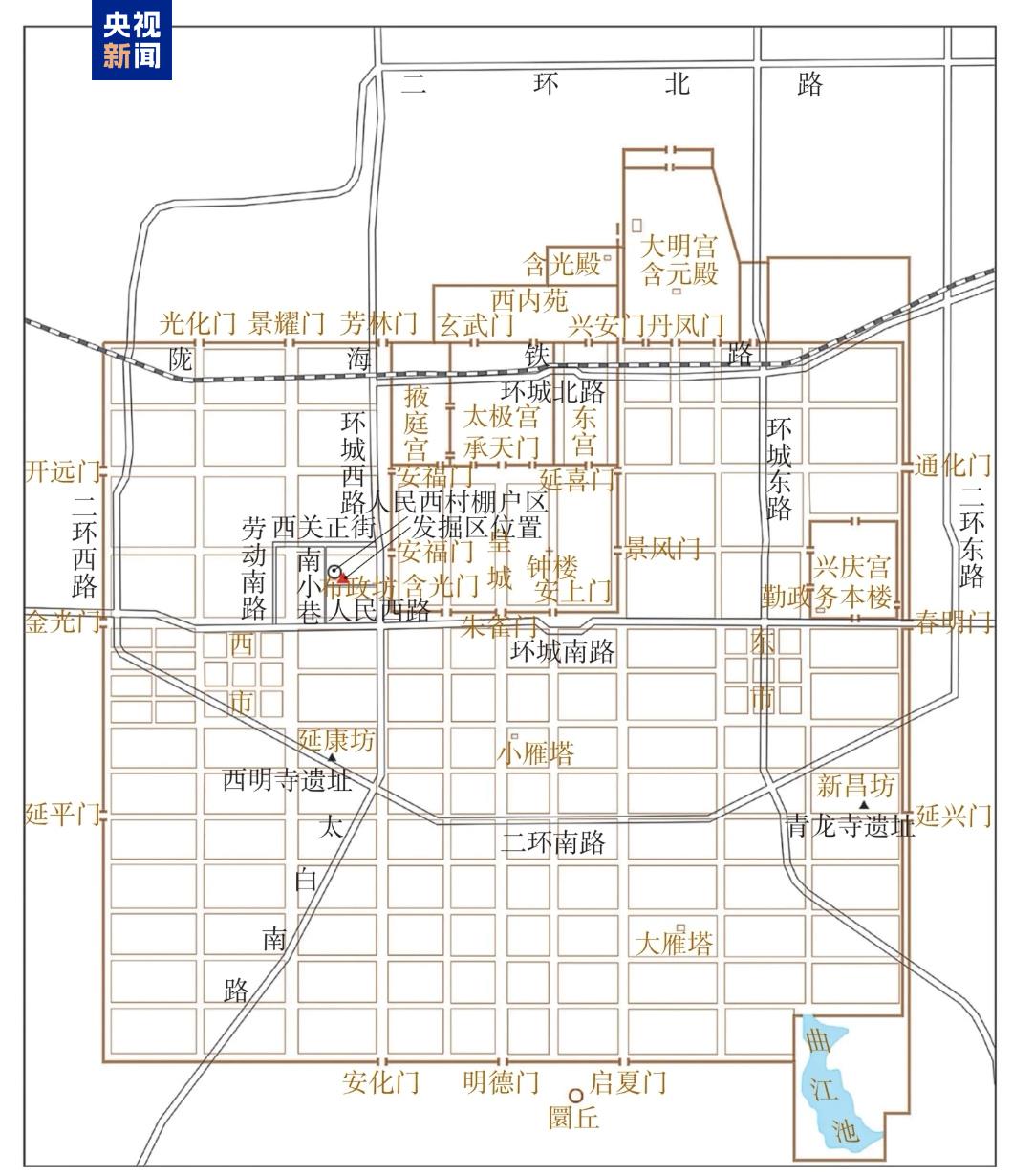 据了解,2022年和2023年,考古工作者对西安市莲湖区人民西村棚户区改造项目用地分别进行考古勘探和考古发掘,结合现代数字化测量结果与隋唐长安城区位复原成果,确定该项目用地位于隋唐长安城布政坊中心略偏西南。根据文献记载,布政坊本名隆政坊,避唐玄宗名改为布政坊。