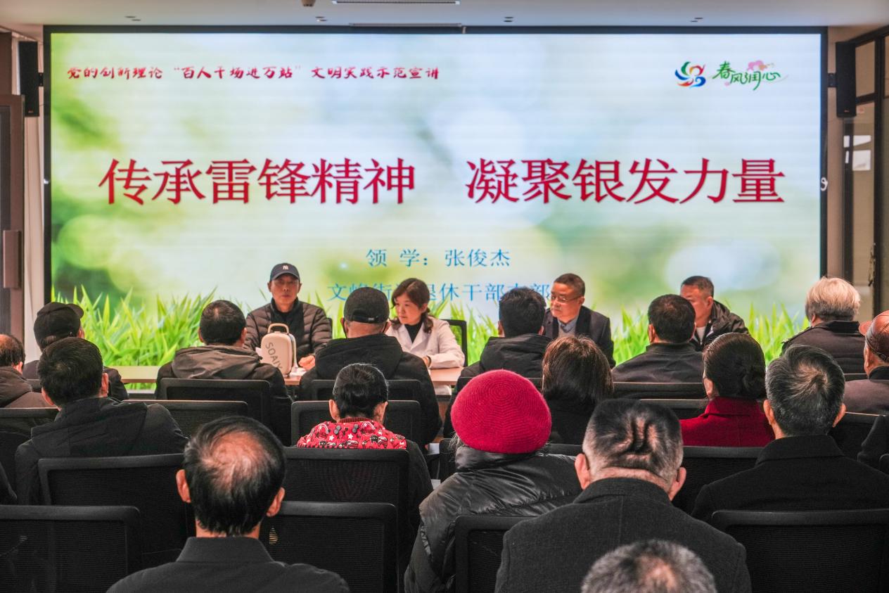 在参观区新时代文明实践中心各功能区后,亭湖区市场监督管理局老干部党委书记王丞领学今年全国两会核心内容,重点围绕政府工作报告中养老、医疗、社会保障等老干部关切领域,结合基层治理、社区服务等实践方向,引导老党员深入理解政策内涵。亭湖区文峰街道退休干部支部书记张俊杰以亲身经历讲述学雷锋的体会,宣读《传承奉献精神 凝聚银发力量》倡议书,倡议老干部志愿者“传承志愿薪火 弘扬时代新风”“发挥优势专长 助力改革发展”“服务身边群众 参与社会治理”“传递爱心温暖 守护志愿微光”,引起老干部们的强烈共鸣。