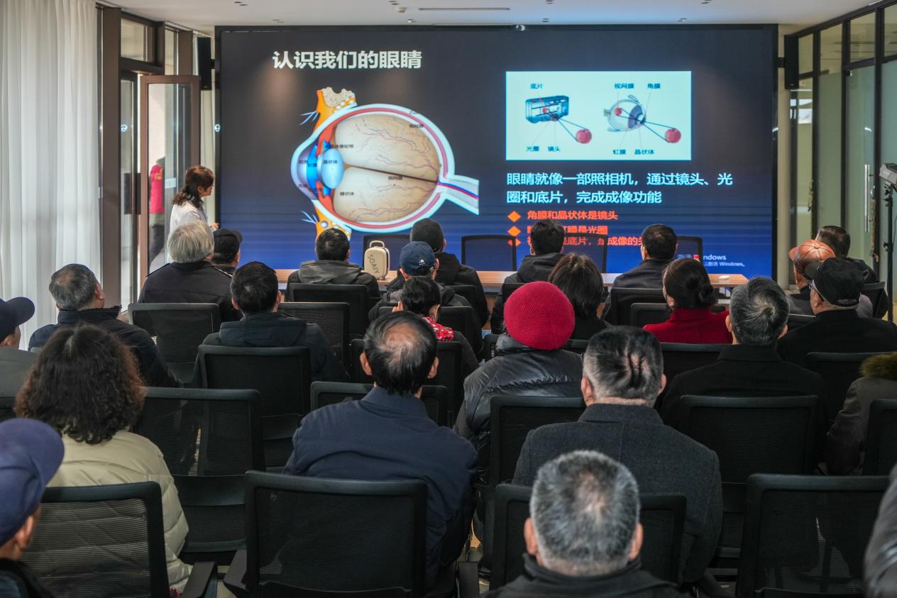 活动中,盐城曙光爱尔眼科医院副主任医师束爱芹为参加活动的干部群众作了《你所不知道的致盲性眼底病》科普讲座,针对白内障、青光眼等常见疾病提供防治指导,详细讲解糖尿病视网膜病变的治疗与预防措施等,并为现场人员进行公益视力筛查,在“鹤翔课堂”志愿服务队帮助下,现场建立健康档案20余份,后续将为有需求的老同志提供定向医疗帮扶,切实解决老年群体看病不便问题。