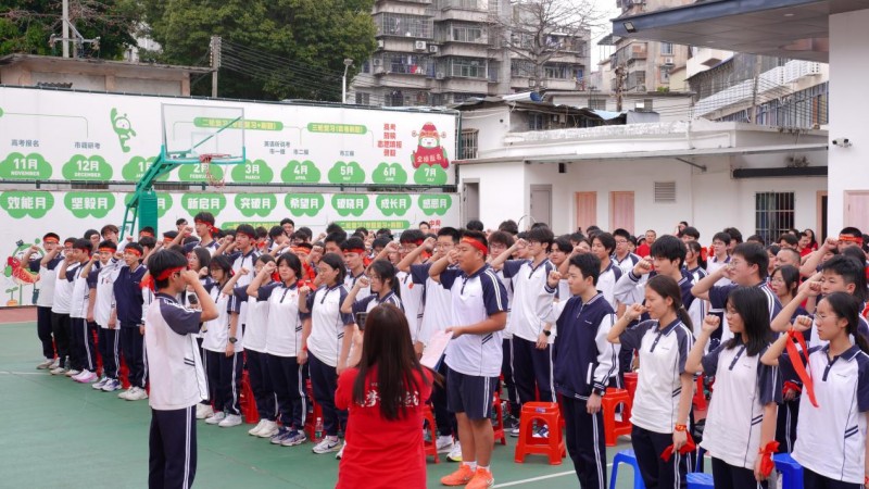 赋能大会前夕,各校区有序开展暖心筹备:播放祝福视频传递牵挂与期盼,组织学子在冲刺横幅上郑重签名,班主任与科任老师为学子系上象征必胜的红头巾、贴上励志脸贴,以满满仪式感为百日征程预热,凝聚家校同心的奋进力量。