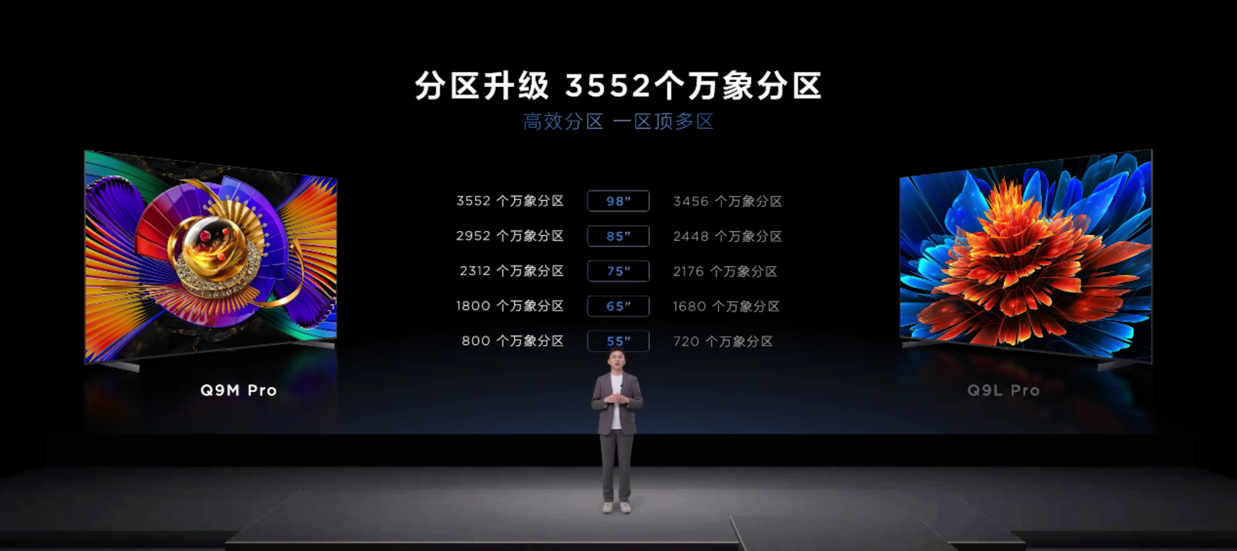 其中Q9M Pro作为「人人可享的SQD-Mini LED画质轻旗舰」,是TCL把高端技术普惠大众的首款诚意之作,关键在于这款机型对SQD-Mini LED技术的应用,全程没打折、没减配,全是实打实的硬货,更是把对比度、色域和峰值亮度这三大画质核心指标全拉满。