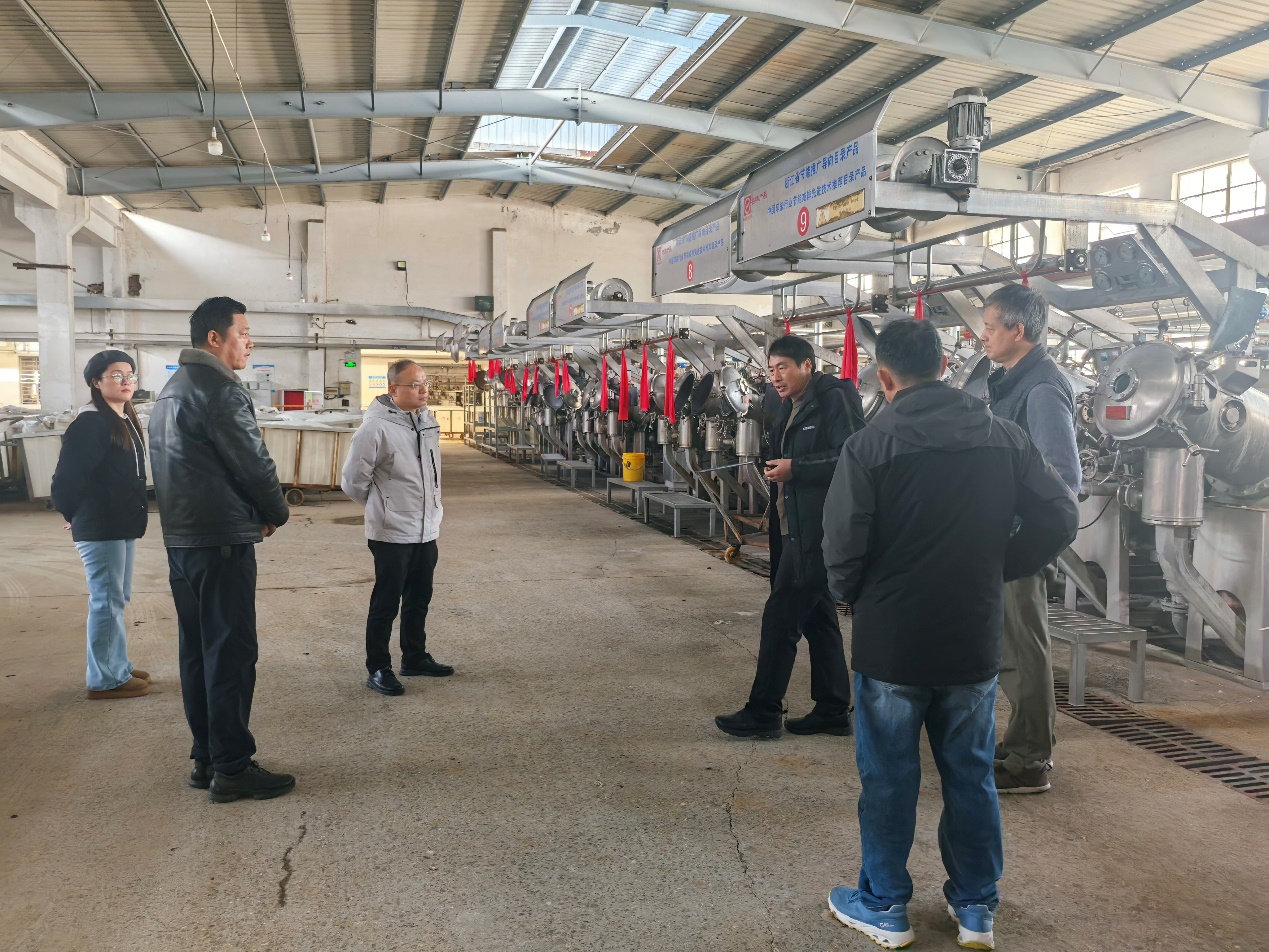 在江苏逸彩纺织科技有限公司的车间里,党员教师仔细察看织造设备运行情况;在大丰万达纺织有限公司的实验室,科研团队与技术人员就新型纱线研发现场交流。走访不是走马观花,每进一家企业,专家们都带着“三张清单”:企业需求清单、学院资源清单、党员攻坚项目意向清单。