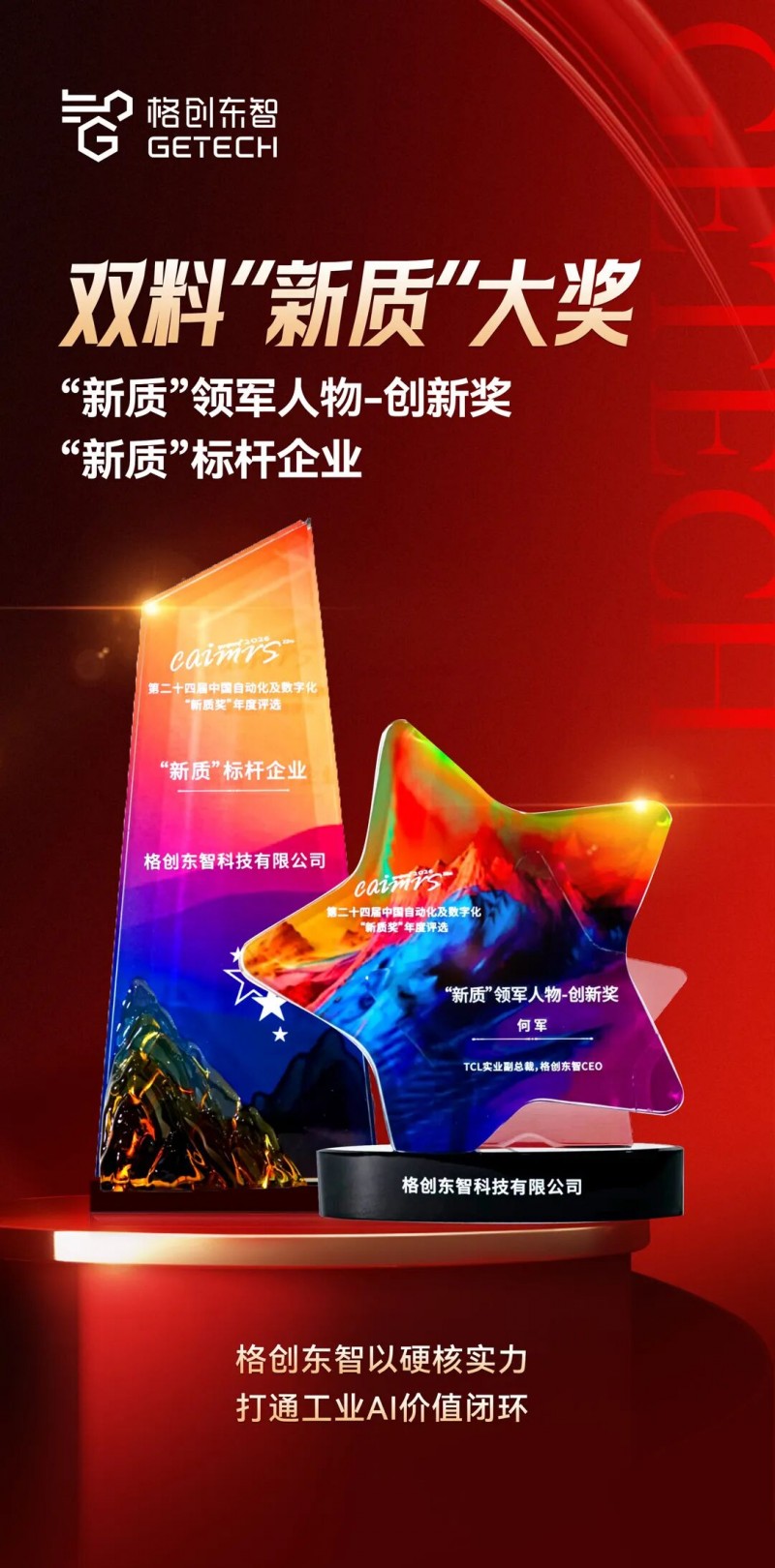 “新质”系列奖项旨在表彰积极利用新技术、新模式引领产业变革,推动制造业高质量发展的行业标杆。格创东智的“双丰收”,是对其将工业AI前沿技术与复杂制造场景深度融合,并实现高质量交付的系统性能力的全面认证。
