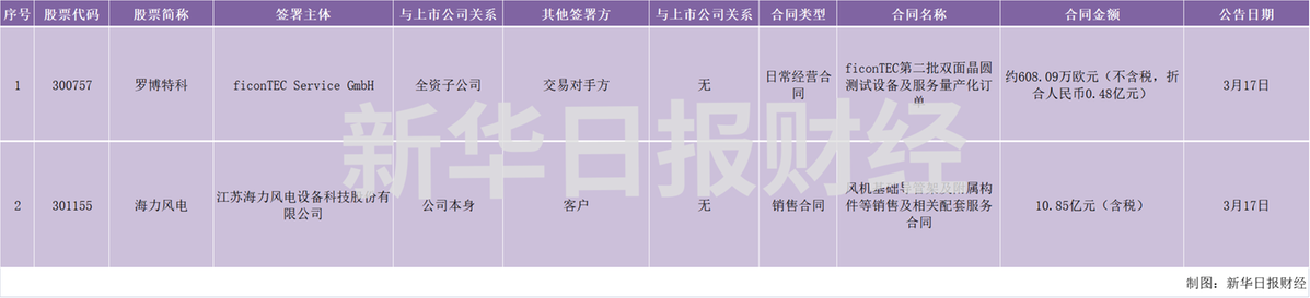 3月17日,罗博特科智能科技股份有限公司发布公告,全资子公司ficonTEC Service GmbH与交易对手方签署日常经营合同,金额约为608.09万欧元(不含税,折合人民币0.48亿元),系ficonTEC签订的第二批双面晶圆测试设备及服务量产化订单,占公司2024年度经审计营业收入的比例超过4.34%。该合同的签订体现了客户对ficonTEC的持续高度认可与信赖,有助于进一步夯实客户关系,提升品牌影响力、市场竞争力,同时有助于公司提升在硅光子封测设备前沿领域的技术水平,巩固领先优势。