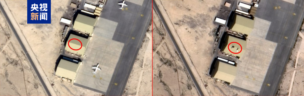 当地时间3月24日,伊朗方面公布巴林、科威特和沙特阿拉伯境内美军基地受袭击前后对比照片。(总台记者 李健南 江浩宇)