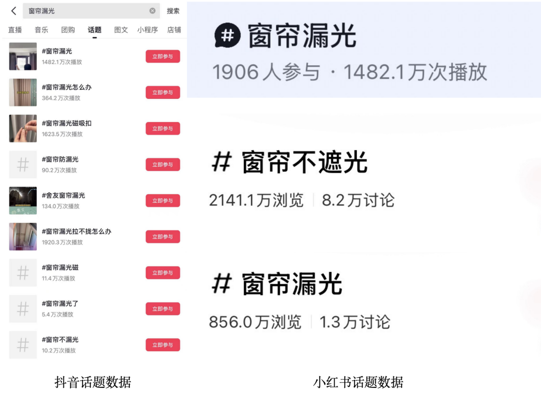 在社交媒体上,#窗帘漏光受害者联盟#等话题仅在小红书、抖音的讨论量就已超过五千万。有用户自嘲:“每天叫醒我的不是梦想,是漏光!”