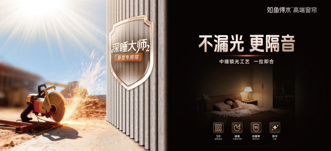 从被一道光刺醒的清晨,到一拉即黑的深睡体验,“深睡大师2”不仅是如鱼得水对产品功能形态的一次革新,更是对用户需求的长期洞察与回应。如鱼得水始终以“用户思维、聚焦思维、极致思维、死磕思维”为行动纲领,将用户的困扰作为产品创新的起点,将用户的体验视为技术升级的方向。未来,如鱼得水将继续以用户为中心,聚焦场景空间,从每一个用户需求出发,用极致产品回应每一份期待。