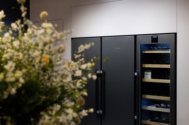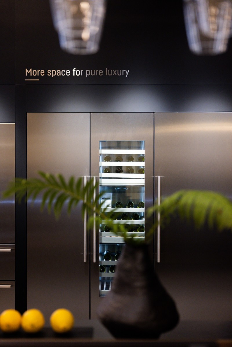 作为利普赫尔的高端系列,Monolith典藏系列无疑是此次展会的焦点。ERBh 9770嵌入式冷藏冰箱、EFNh9671嵌入式冷冻冰箱、EWPh9670嵌入式三温区葡萄酒柜,以超越2米的恢弘尺寸,搭配利落的线条,勾勒出大气磅礴的轮廓,与其说是家电,不如说是一件嵌入厨居空间的艺术品,自带雅奢气场。
