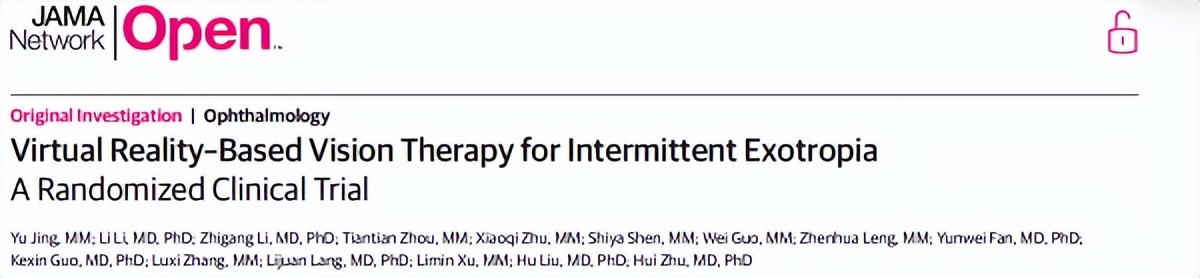 间歇性外斜视是儿童最常见的斜视类型,长期以来,手术治疗成功率有限,传统非手术疗法又缺乏高质量循证医学证据支持。如今,这一困境迎来突破——南京医科大学附属第一医院刘虎、竺慧教授团队,在JAMA子刊发表随机临床试验研究,证实基于虚拟现实(VR)的家庭视觉训练,可安全有效改善儿童间歇性外斜视,为患儿提供了全新的非手术选择。
