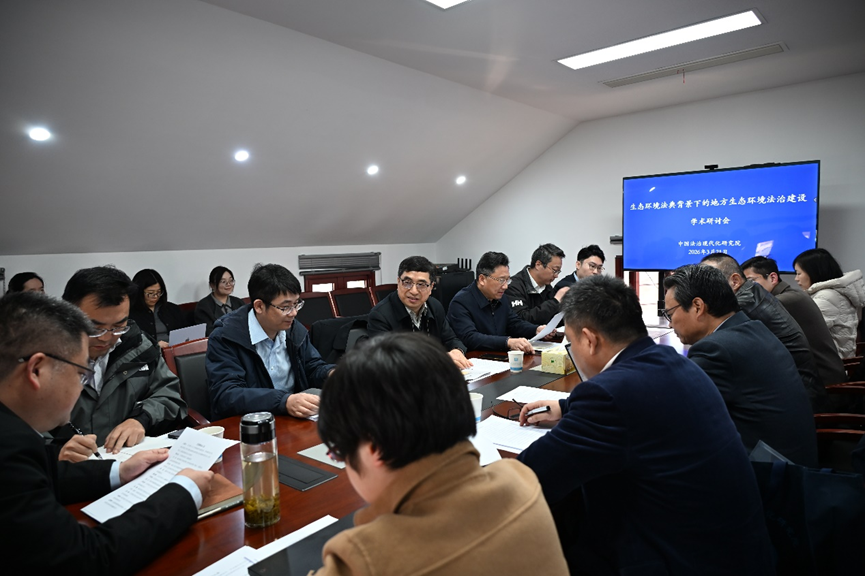 2026年3月21日,由南京师范大学中国法治现代化研究院和江苏省法学会生态法学研究会联合主办的“《生态环境法典》背景下的地方生态环境法治建设”学术研讨会在南京召开。本次研讨会以2026年3月12日十四届全国人大四次会议审议通过的《中华人民共和国生态环境法典》为背景,围绕地方生态环境立法路径与法治建设实践展开深入研讨,20多位来自法学研究和立法司法等领域的代表与会发言。