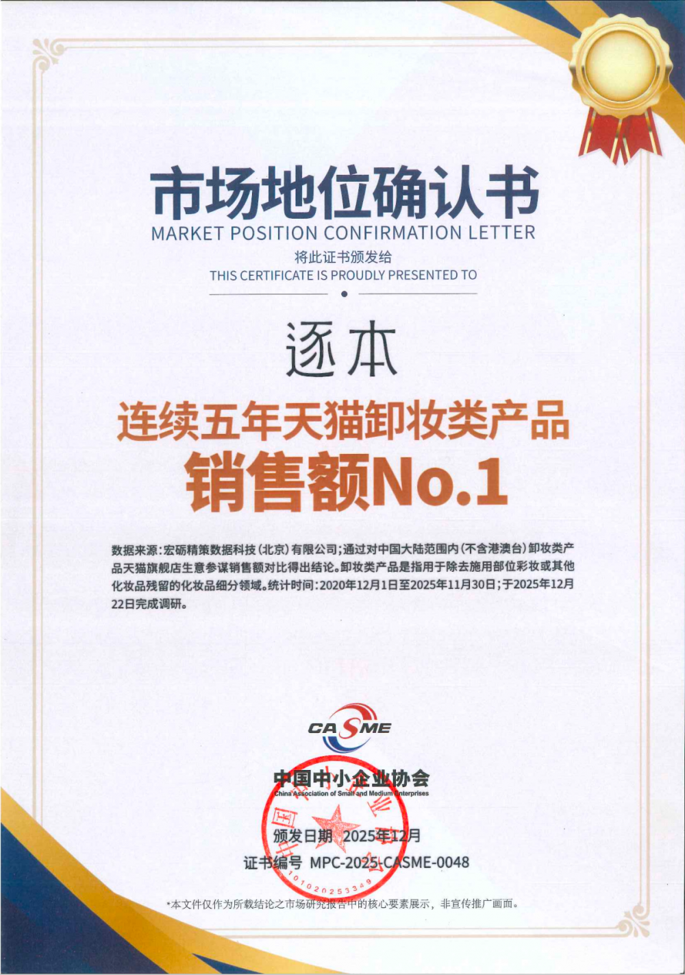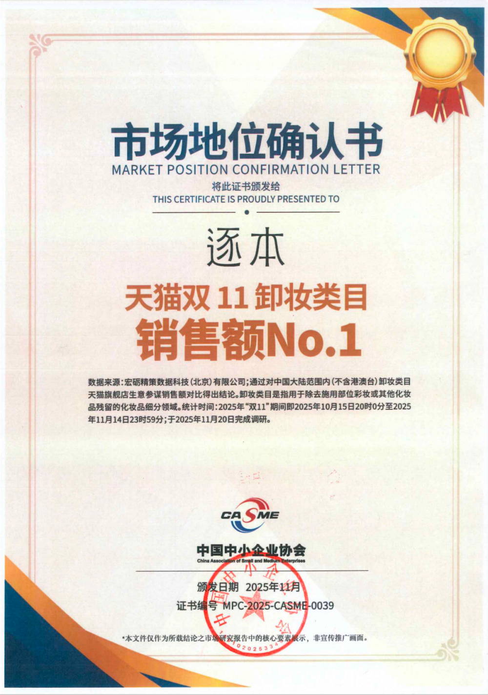 以卸妆为起点的逐本,凭借扎实过硬的产品力、深厚的用户口碑积淀以及全渠道的精准布局,实现连续五年天猫卸妆类目销售额第一的辉煌成绩,2025年双十一,更是凭借强劲的市场竞争力一举斩获了天猫双十一卸妆类目销售额No.1。据悉,25年逐本卸妆业务销售收入约为10亿+元,品类渗透率达到10%。累计服务3000万+消费者,售出5200万支卸妆产品。实打实的市场表现,证明了逐本在国货卸妆赛道的绝对领导者地位,成为国货美妆高质量发展的标杆代表。