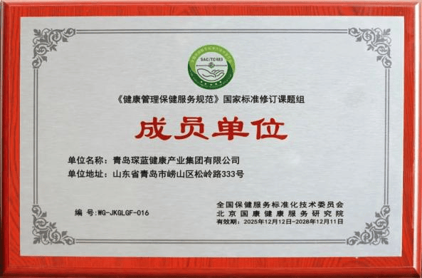 日前,琛蓝健康产业集团正式获得全国保健服务标准技术委员会秘书处颁发的牌匾,成为《健康管理保健服务规范》与《老年保健服务规范》两项国家标准修订课题组成员单位。这一重要身份的确立,标志着琛蓝健康在保健服务标准化建设领域迈上了新台阶。