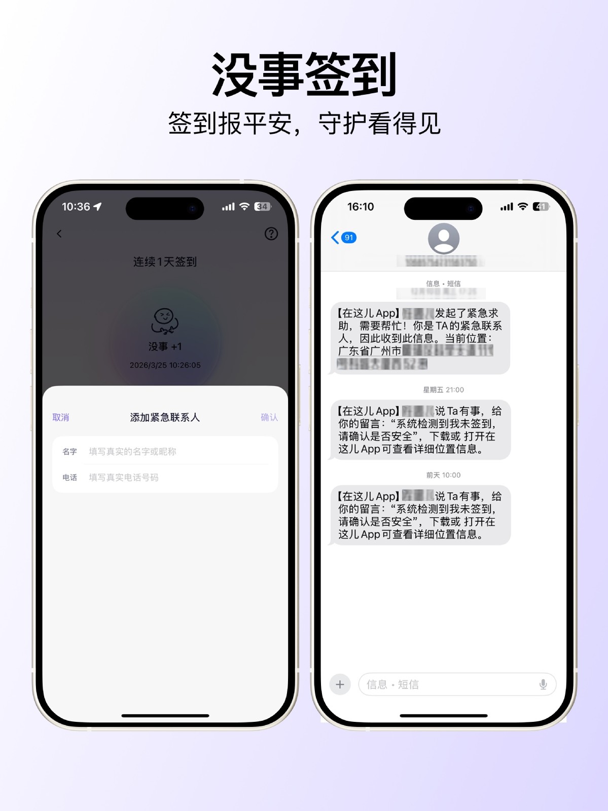 从成熟的全场景安全布局,到 “每日没事签到” 的细节补位,“在这儿 App” 始终以用户需求为核心,用科技为家庭守护赋能。这一新增功能的上线,不仅为亿万独居群体带来更贴近日常的安全保障,更让千万家庭的牵挂有了及时回应,真正实现 “让安全守护看得见”。(图文:在这儿)
