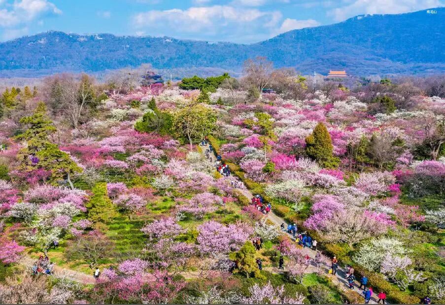 以梅花为例。相传,东晋太守梅颐偏爱梅花,令在岗岭丘地广植梅花,孙陵岗等均为当时植梅的遗迹。此后,南京人植梅赏梅之风历代相沿,孙陵岗也正式改名为“梅花山”。目前,梅花山梅花涵盖11个品种群、400多个品种,其中国际登录品种155个,堪称“梅花博物馆”。