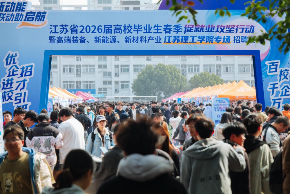 3月25日下午,江苏省2026届高校毕业生春季促就业攻坚行动暨高端装备、新能源、新材料产业江苏理工学院专场招聘会在该校南苑操场举行。招聘会紧扣江苏省“1650”现代化产业体系布局,聚焦常州“1028”产业发展规划,精准对接高端装备、新能源、新材料三大领域人才需求,集校地协同、企业集聚、服务精准于一体。