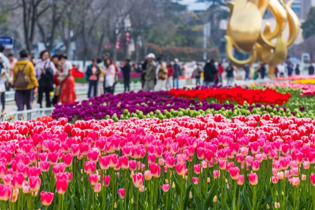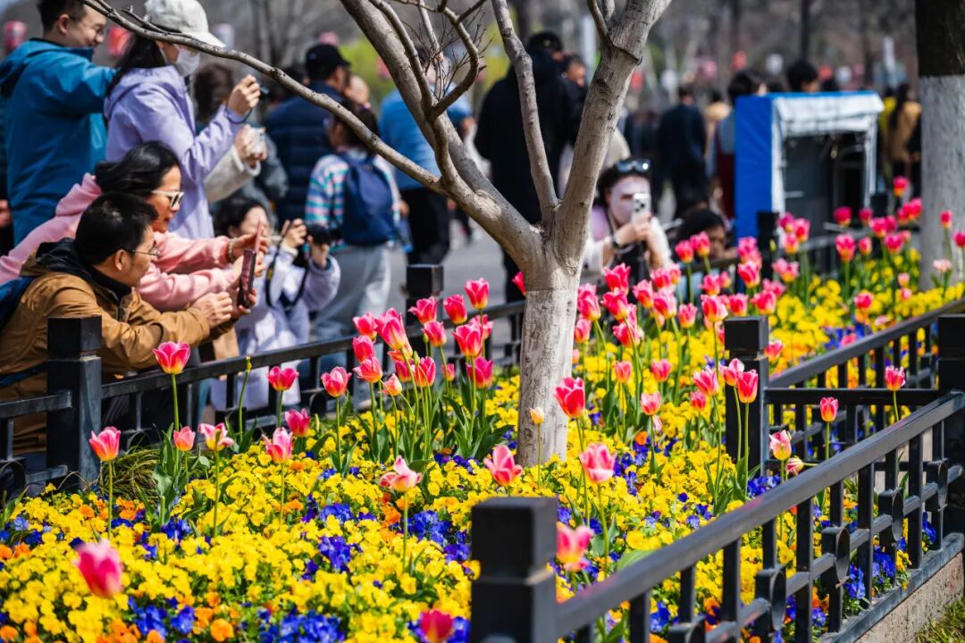 春风送暖,玄武湖郁金香已陆续进入盛花期,迎来全年最佳观赏时节。景区主要种植于情侣园花卉大道、访花蝶径片区,种植面积约 5000 平方米,共计14万株,30余个品种。同时配植洋水仙、风信子等花卉7800株,色彩斑斓、层次丰富,承包金陵春日的浪漫与热烈。