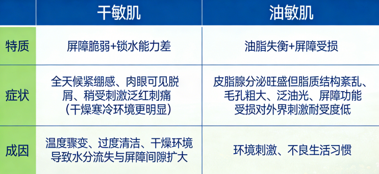 2、干敏肌vs油敏肌的修护重点是什么?