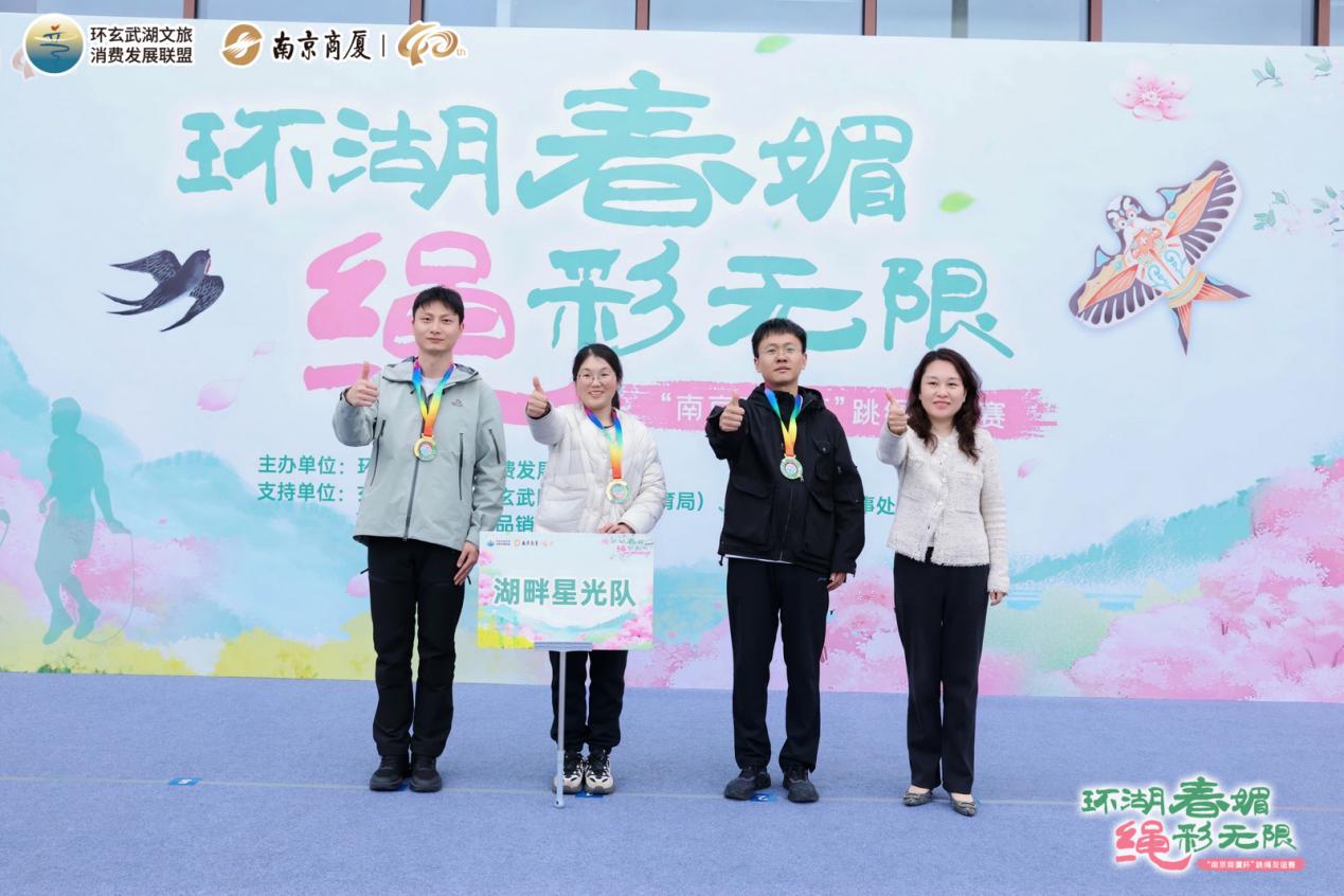 3月26日下午,由环玄武湖文旅消费发展联盟主办,玄武湖综管办、玄武区文旅局(体育局)、锁金村街道、南京商厦联合支持的2026“环湖春媚·绳彩无限”南京商厦杯跳绳友谊赛,在南京商厦外广场圆满落幕。本次比赛吸引了来自环玄武湖文旅消费发展联盟成员单位和南京文旅集团旗下部分单位共20支队伍参赛,200名参赛者齐聚一堂,共赴这场春日体育盛会。