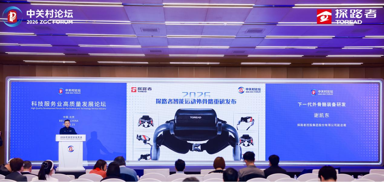 在2026中关村论坛年会“科技服务业高质量发展论坛”上,探路者集团围绕“下一代外骨骼装备研发”主题进行分享,发布了自主研发的第二代智能运动外骨骼,并就科技服务业企业转型升级过程中涉及的生态营造、场景应用等关键环节展开交流。