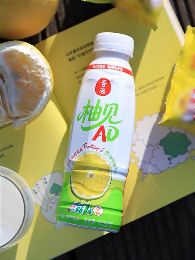 · 吾尚柚见AD钙奶:融合柚子的清苦与回甘,果香与奶香碰撞出层次丰富的味觉体验。