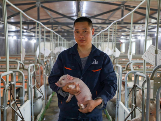 四川宜宾江安县的陈松,曾是全凭经验的散养户,2018年加入德康“公司+家庭农场”模式后,从猪场建设、养殖技术到数据管理,全流程都有专人指导,还走进投资5000万元的“百村百万”工程实训基地学习现代化养殖方法。如今他经营着200头母猪的现代化农场,养殖料肉比持续优化,母猪繁育效率大幅提升。更成为当地养殖带头人,带着十几户乡亲抱团发展,实现了从“散养户”到“新农人”的蜕变。