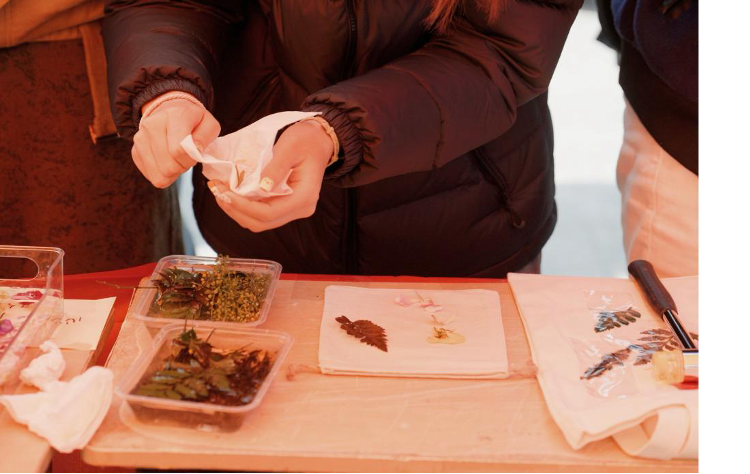 运用天然植物色素,在布料上拓印、浸染,留下独一无二的春天气息与自然印记。