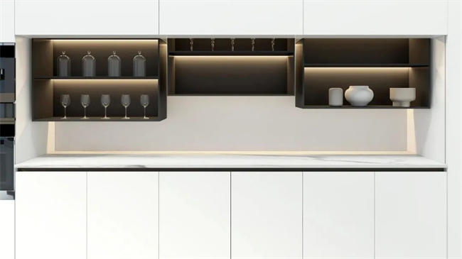 餐厨区域的升降台盆、电动吊柜,可根据老人身高自由调节高度,弯腰、抬手不再费力,让备餐、洗漱更轻松。