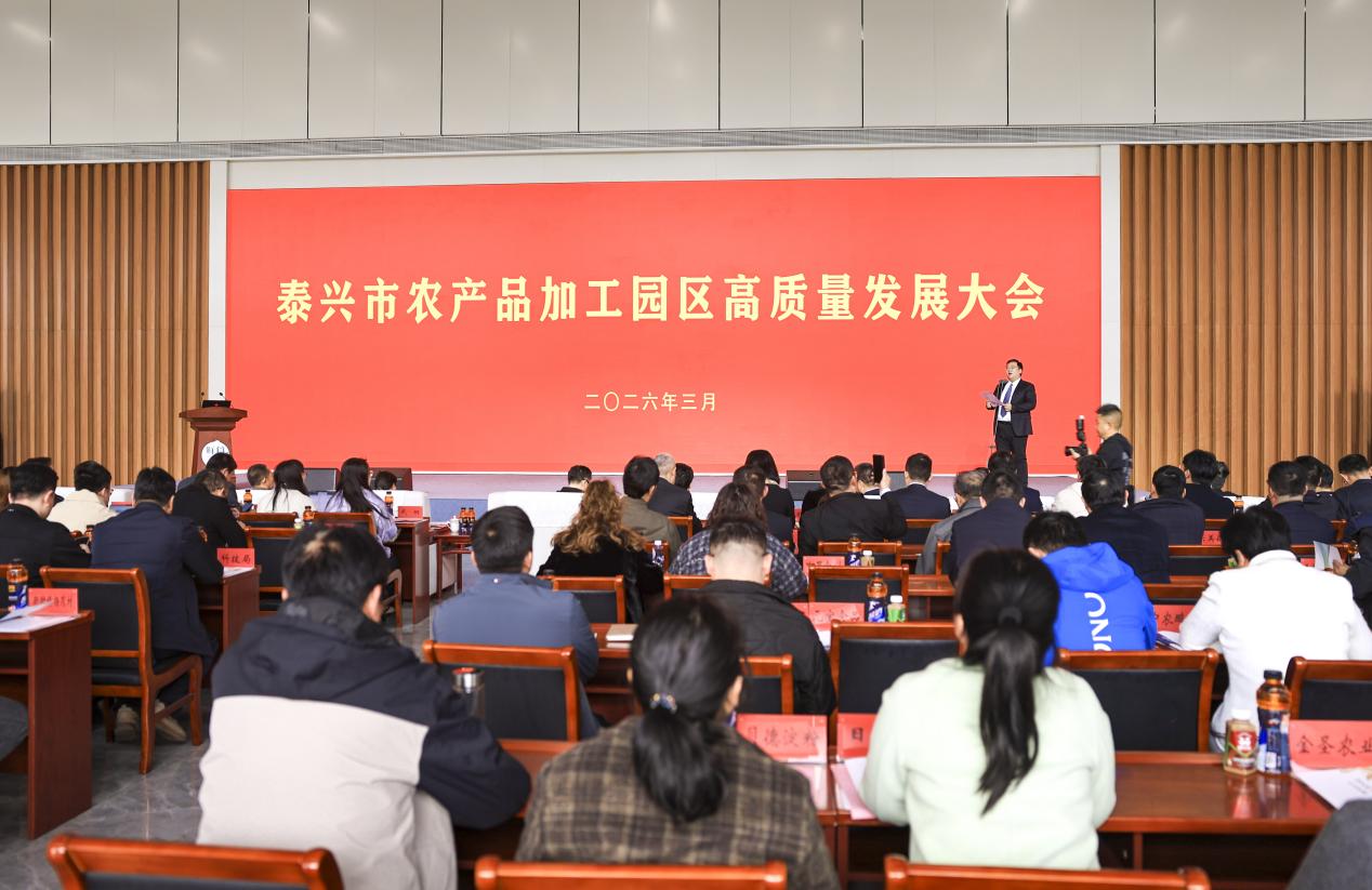 3月26日下午,泰兴市农产品加工园区高质量发展大会召开,来自政产学研用各领域的数百名代表齐聚一堂,围绕“聚链向新强产业 园企同行赢未来”主题,回顾过往发展成果,共谋未来升级路径,释放出园区锚定农产品加工赛道、全力冲刺高质量发展的鲜明信号。