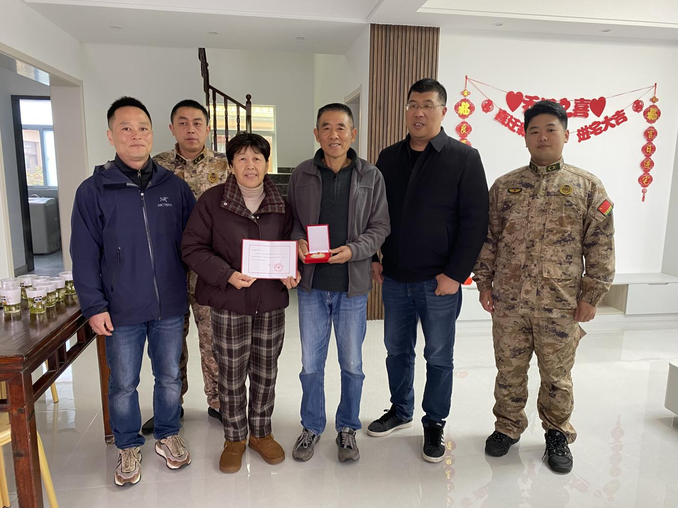 锣鼓喧天,喜气洋洋。为弘扬拥军优属光荣传统,营造“一人参军,全家光荣”的浓厚社会氛围,近日,阳江镇武装部联合退役军人服务站及东湖村工作人员,组成送喜团,专程前往今年春季光荣入伍的新兵家中,为他们送入伍通知书,并向支持国防建设的新兵家属致以最崇高的敬意和最热烈的祝贺。