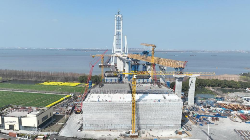 3月22日,张靖皋长江大桥南航道桥南锚碇散索鞍支墩施工完成,为后续主缆索股架设及上部结构施工奠定基础。