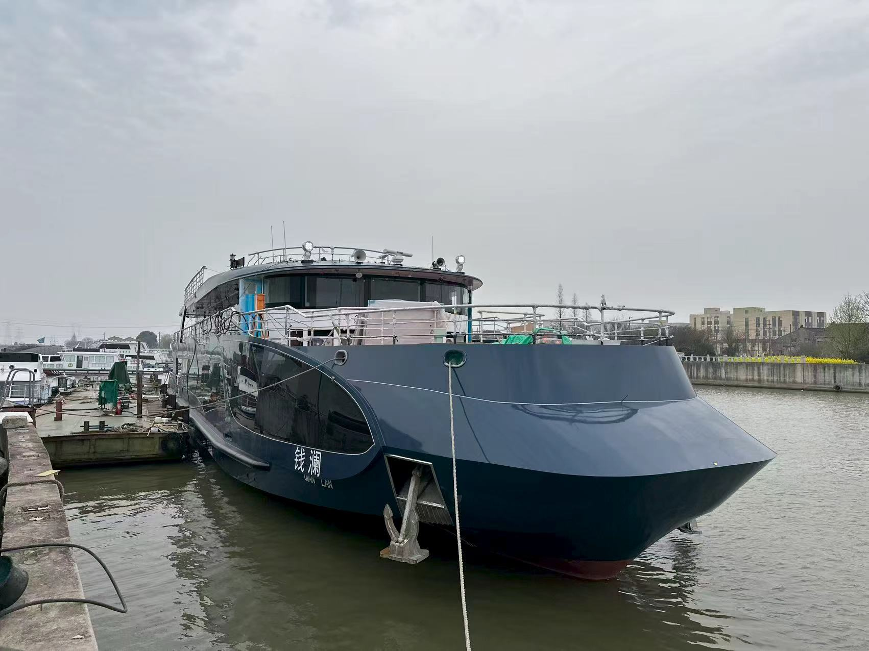 据悉,此次下水的“钱澜”号,是目前江苏省内自主设计建造载客量最大的新能源客船,该船采用全钢质焊接结构,总长49.9米,设计额定载客376人,按照内河A级航区要求设计,采用电动机加锂电池组的混合动力推进方式,以经济航速运行时纯锂电池续航力不小于3小时,后续将用于浙江钱塘江观光游览。