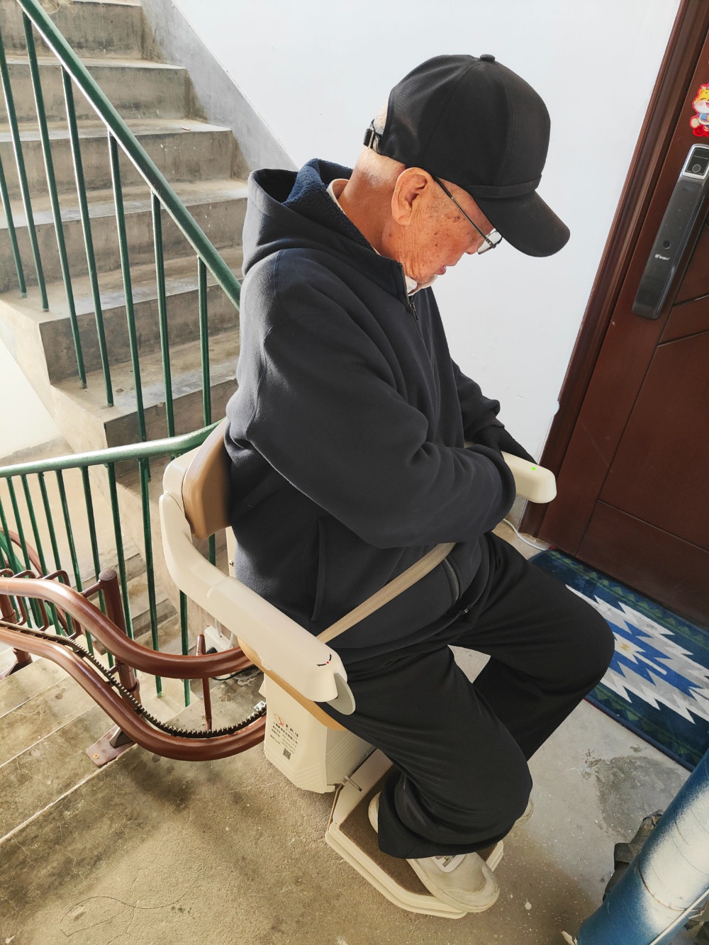 一是安装友好,零破坏、低干扰。不同于传统加装电梯的大拆大建,这台楼道座椅电梯(楼梯升降椅)无需拆除楼梯、无需改造墙体,只需沿楼梯扶手一侧安装轨道,即可完成全部部署。施工周期短、施工噪音小,全程错峰作业,最大限度减少对小区居民日常作息的干扰,既完美适配老楼的建筑结构,也避开了传统加装电梯的高成本、高协调难度、长周期等痛点。