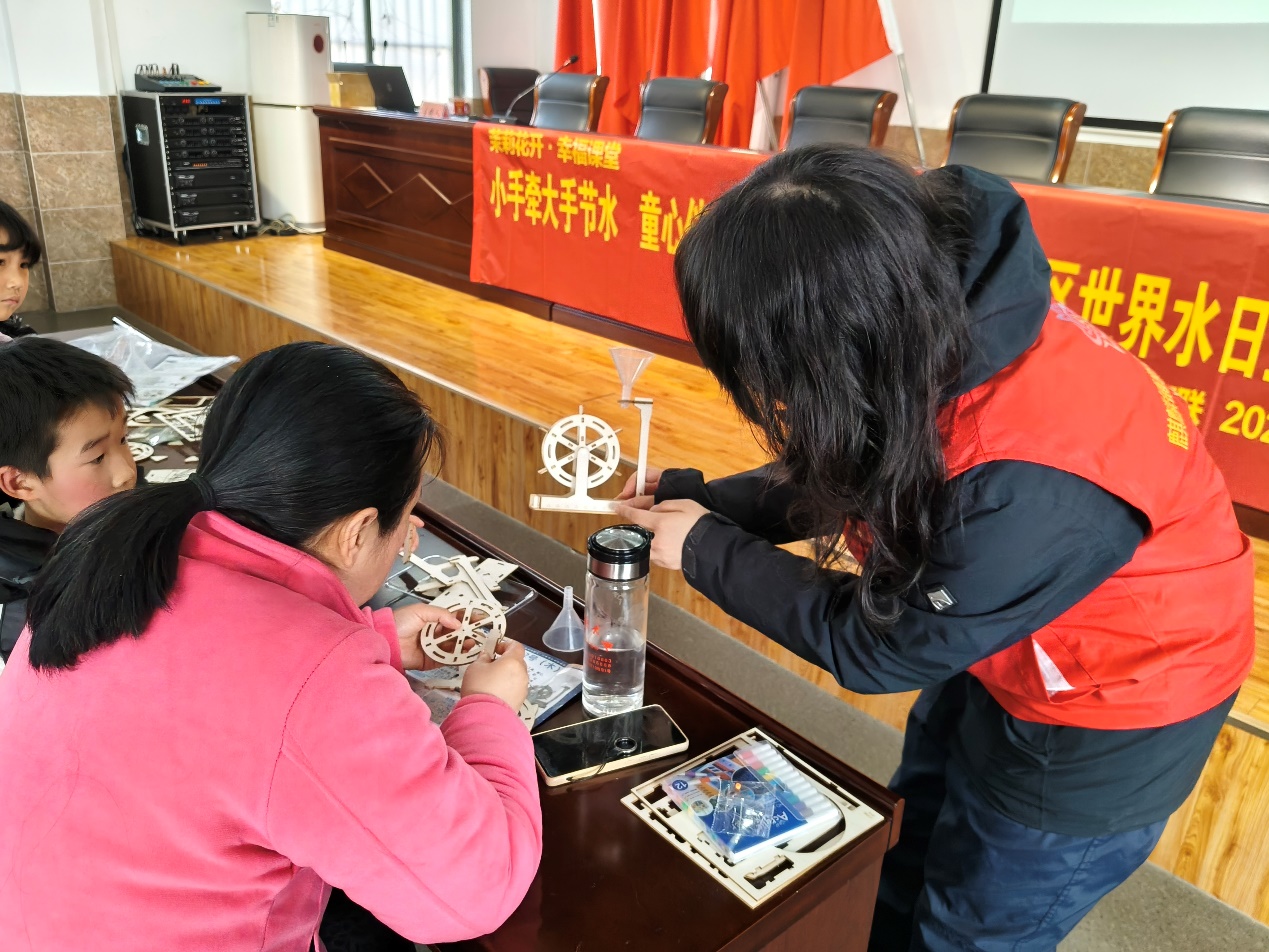 随后开展的“水动知源·迷你水车制作”环节更加烘托了活动氛围。社区志愿者为亲子家庭发放材料包,并讲解水车制作步骤与基本原理。孩子们在家长的协助下完成水车的组装与简单装饰,通过动手实践直观感受水流带动装置运转的过程,在观察与体验中加深对水资源利用方式的认识。