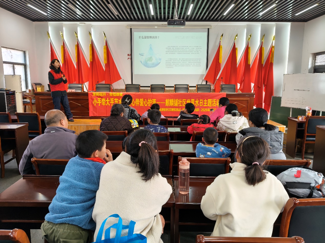 为增强社区亲子家庭节水意识,倡导绿色环保理念,3月21日下午,麒麟铺社区新时代文明实践站在社区活动室开展世界水日主题活动。活动通过知识讲解、情景讨论与动手实践相结合的方式,引导孩子在参与中认识水资源的重要性,在体验中养成节约用水的良好习惯。