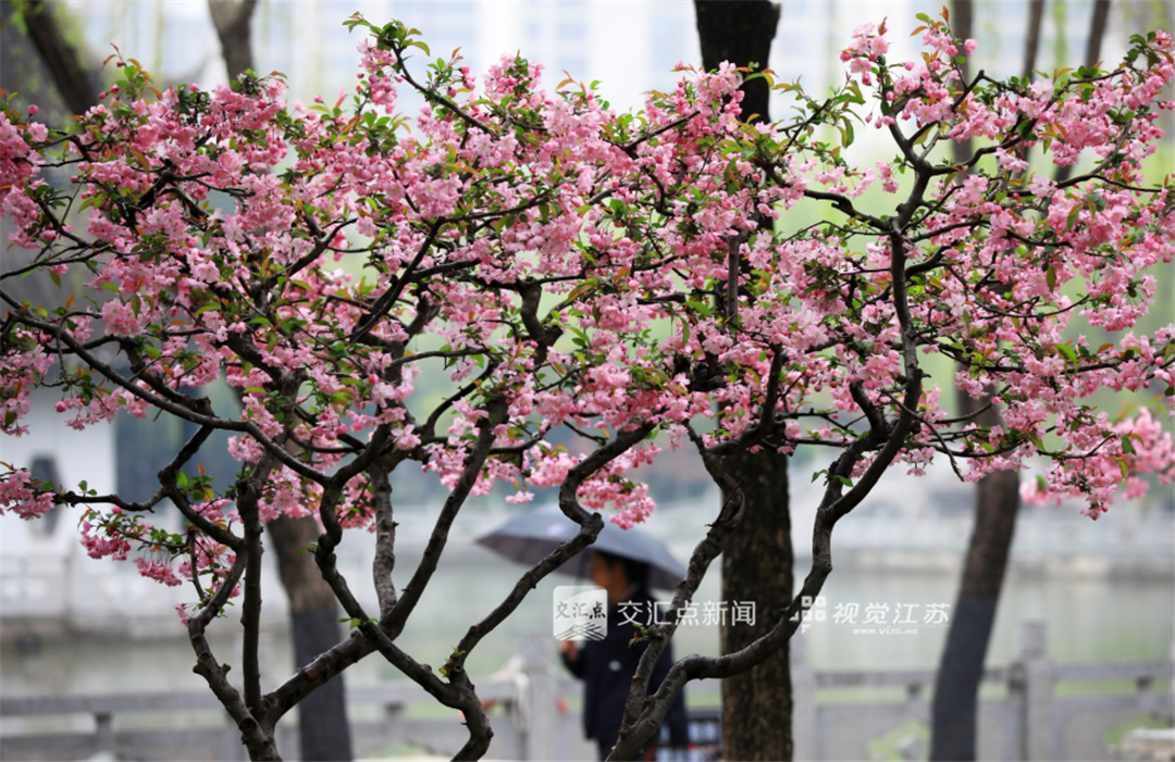 (特约摄影 周长国 07:47摄 10:02上线)3月30日,绵绵细雨中,淮安古典园林清晏园海棠花竞相绽放,吸引游客前来赏花拍照。
