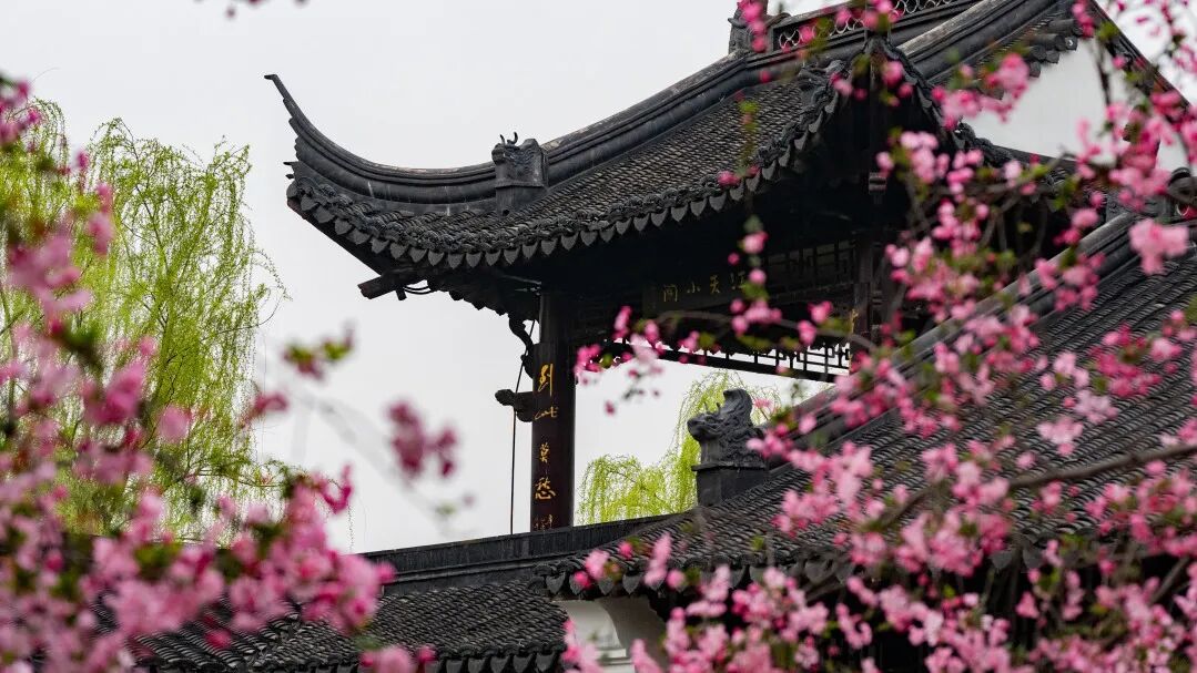 胜棋楼前,几株垂丝海棠正值盛放。朱红的楼阁,粉白的花瓣,一重一轻,一刚一柔。这里是明太祖朱元璋与徐达弈棋之处,历史的厚重与春日的轻盈,在此刻完美交融。