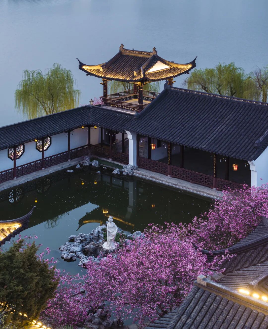 仿古建筑的飞檐翘角、花窗月洞,都是天然的画框。以窗为框,以花为景,随手一拍,便是大片质感。