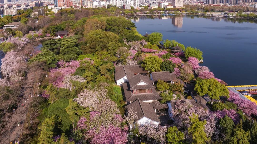 趁着花期正好,不妨来莫愁湖走走。在古建与繁花之间,在垂丝与西府的花影之中,遇见春天的顶级神颜。