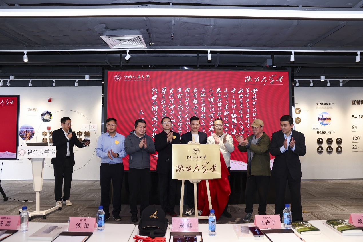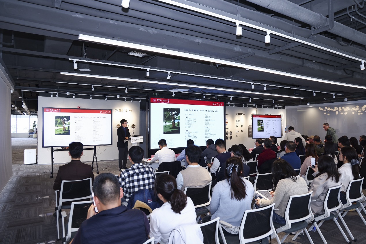 讲座开始前,还举行了中国人民大学“陕公大学堂”南京活动基地授牌仪式。讲座结束后,南京大学原党委书记、中国人民大学校友洪银兴向主讲嘉宾陈涛教授颁发荣誉证书,并向华贸中心赠送了一批最新学术著作。